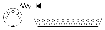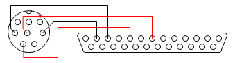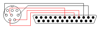 | mini DIN, 8-pin, male | <==> | D-sub, 25-pin, female | figure | ||