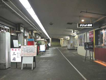 銀座シネパトスは数寄屋橋交差点から晴海通りを勝鬨橋方向へ進み、昭和通りと交差する三原橋交差点手前にある映画館。入り口は左記の写真。晴海通りを横切る地下道の中にある。地下鉄『東銀座駅』から徒歩数分だが、『銀座駅』からも近い。JR『有楽町駅』から歩いても15分くらいか。2枚目が地下道入り口の階段、ここを降りるとすぐ左側がシネパトス1。右側がシネパトス2。シネパトス3は一番下の写真の奥、階段手前右側にある。 |