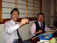 6 前列左から、廣崎・越山(妻)・坂之上・森田・有森(寝てる)・渡島 中列;店のおじちゃん・おばちゃん 後列;木佐貫・迫田・津守・吉田・越山。以上11名と2名でした。 みんな良い具合に酔っぱらってます。 |
