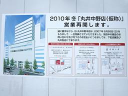 中央線系ローカル雑誌「たのしい中央線」(太田出版)でも少し話が出ていた「丸井中野店」の復活(註:PDFファイルにリンクが張ってあります)が公になったんでする。解体工事中の現地にこんな感じで張り出しが出てましたよ。