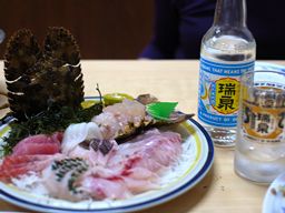 今回メインで選んでもらったのが「ワラジエビ」、でそれ以外には「オジサン」と車エビの様でそれよりももっと大きい海老(名前忘却)。お魚代は5000円。そして調理代が一人500円(これは食堂に支払う)なり。このお造り等が出てくまでの間は、チャンプルーとかを頼んでビールで喉を潤し、魚が出てきたら泡盛を頼んでガツガツ頂いてぷはぁ、あー満足ーなのでありまする。