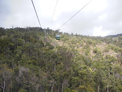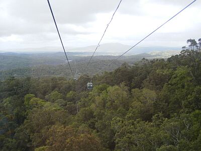 ずは、Skyrail(ゴンドラ)の始発駅、Caravonicaから。 出来てからまだ日が浅いのか、清潔で感じの良い駅でした。 このSkyrailは、世界遺産の熱帯雨林の中を行く為、一切道路を使用せずにヘリコプターのみで資材を運んで建設されたとのことです。 おかげで、工事用の道路に分断されない、一面の熱帯雨林を楽しむことが出来ます。 |