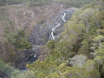 から見たバロン滝です。 この滝は後程キュランダ列車で反対側の岸から再び見ることになります。 |