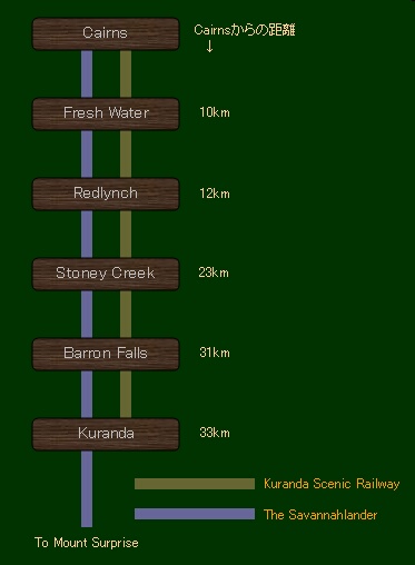 また、Kurandaから先は週1往復のみ"Savannahlander"が走っています。