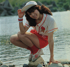 花柄カバーのベッド、白いタンス、本棚にはマンガ・愛と誠の単行本、壁にはオリビアのレコードジャケット。