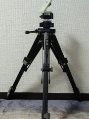 | [三脚] SLICK製の三脚ですが、丈夫なものです。本来○万円はするものなのですが、雲台抜きということで安く手に入れることができました。雲台がわりに水平検出を行うものを 取り付けてあります。万が一、固定が解除されても自由雲台ほどの稼動範囲がないので安全です。 |