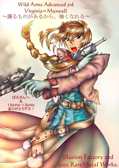 rareさんのHPのキリ番をゲット! WA3のヴァージニアをリクエストさせてもらいました。 ありがとうございます♪ 色味が複雑です。凄い。 私なぞ、感覚で色を置いているので 色数を増やすとどんどんバッチくなっちゃいます。 色味を複雑に出来る方は凄いですねぇ。 スカートのところの色味が得によい感じです♪ 頂いたものはもう少し大きかったのですが、 ページに合わせてリサイズさせていただきました。