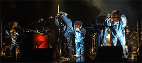 この演出が実に僕はライダーズだと思う。普通、ライブの最初と終りは非常に大きなウエイトをかけるものだ。良い演奏はもちろんだが、演出の部分ではここが大事だと思う。素晴らしい終り方を考えそれをやり終えた場合、余韻を楽しむものだが慶一さんは違うのだ。この舞踏会が何を意味するのか僕には難解だが、月の前での舞踏会は絵になると思えた。で、メンバーが観客席に降りピックアップしに行く下りが慶一さんの好きなパターンのようだ。何が起るか分からない緊張感が好きなのだろう。ほぼぶっつけ本番ながら、楽しめたライブという感じが最後に出来上がった。