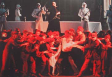 意表をつく幕開けとなったが、大きな壁は舞台の真中くらいまで上がる。舞台の下半