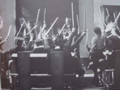 さて学生たちの何人かはトランペットを携え、国王登場の場面などではファンファー