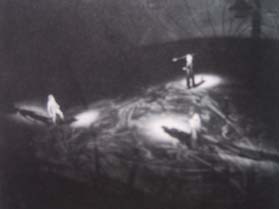 丸く隆起した丘になっていて、何層もの薄い幕に映し出されたスライド映像が夜明け