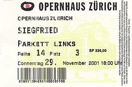 ![]() RING DES NIBELUNGEN, ZWEITER TAG Siegfried Richard Wagner 29.November 2001, 18.Uhr Opernhaus Zurich |