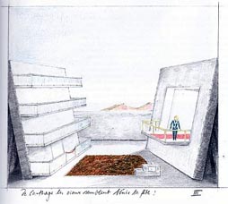 第3幕は左右の壁でV字の構造となったカルタゴの宮殿。群集は黄色いユニフォームを着ていて、マイヤー演じる女王ディドンも同じユニフォームを。いわゆる宮殿というイメージではなく、高度に民主化された王国カルタゴを描写しているようでした。第17番の合唱の壮麗さとオーケストラが一大スペクタクルを聞かせる当たりは大いに高揚しました。続く大工、水夫、農夫達の行進では、黄色いユニフォームの群衆がパントマイムでそれぞれを演じ分けるという手法でスピーディに舞台が進行しました。そしてトロイ人たちの登場からカルタゴと連合を組むまでの下りは実にドラマチックな演奏とともにクライマックスを。合唱のパワフルさが大いに威力を発揮した幕でもありました。