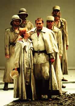 夕方5時から始まって夜23時近くまで掛かったトロイは時間を忘れるほど素晴らしい公演で大感激でした。第1幕では凱旋門が倒れて、半分が地中に埋まったセット。中央の門のところが地上に口を開いているといった感じで、凱旋門の廃墟がトロイの城壁をイメージしていました。ギリシャ軍が去って、歓びの群集が凱旋門の外で歌うという場面からオペラは始まる訳で、これに混じって登場するポラスキのカサンドラがひときわ威容を放っていました。そのドラマチック・ソプラノはさすがのもので、男まさりというよりも女性的でした。エネーはヴィラーズ病気のためキャンセルとなったのが残念ですが、冒頭のアナウンスが聞き取れず誰が代役なのか不明。それでもかなり伸びのあるテノールで、ポラスキと渡り合う場面は迫力満点でした。 第1幕のクライマックス、木馬を城壁内に引き入れる場面の行進は、実際に演出するのではなく、群集達が凱旋門の上からオペラハウスの客席方向に向かって木馬を見守るといった手法が用いられました。この時は夕日のようにステージが照らされ、木馬が通過するときに日食のように一旦は繰らなくなり、再び夕日の赤い光に戻るといった演出で、以外と迫力がありました。そして何と言っても、アンサンブルの盛り上がりと合唱の高揚が素晴らしく、トロイの魅力を早くも堪能できました。 第2幕では倒れた凱旋門を縦に切り開いたセットでした。そこには格子状の棺が詰まっていて、中央にはヘクトールらしきミイラが。白い布で包まれた体からら血が滲み出す演出はとても不気味でした。トロイの女達が祈る場面では、凱旋門の開かれた中腹にプリアモス王の財宝らしき黄金が掲げられており、途中から入り乱れてきたギリシャ軍はシチリア・マフィアのような設定でもありました。それにしても第2幕でのポラスキは一段とスケールアップした感じで、すごい迫力でした。ここで第1部のトロイの陥落が終了となり、40分の休憩が入りました。それにしても第1、2幕だけで100分近くあって、ヴォツェックかサロメを見終わったような充実感でした。