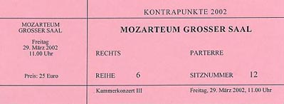 9時半頃にホテルに到着し、10時半にモーツァルテウムに向う。途中のミラベル公園も小鳥がさえずり、朝の空気がとてもフレッシュ。11時開演のコントラプンクテは8人のベルリンフィル・メンバーが構成するシャローン・アンサンブルの演奏で、指揮はBPOヴィオラ奏者のヘンリック・シェーファー。主にコンテンポラリを得意とするアンサンブルで、今日のプログラムもウォルフガング・リームとヨハネス・マリア・シュタウトの作品が選ばれていた。