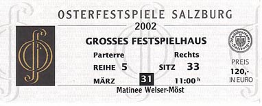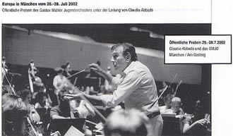 さてマチネには二つの楽しみがある。ひとつ目の楽しみはマーラー・ユーゲントのブルックナーを聴くことで、ふたつ目はフランツ・ウェルザー=メストのブルックナーを聴くこと。まずマーラー・ユーゲントについて、三日連続でベルリンフィルを聞いてきたにも関わらず、決して聴き劣りがしないほど素晴らしかったこと。むしろベルリンフィルに肉迫するほどの勢いが素晴らしかった。メンバー達も若いだけにサウンドも実にフレッシュで、勇猛果敢に挑むパワーに溢れていた。特に目立ったのは弦楽器奏者たちの切れ込みの鋭さと緻密さ。ボーイングが超高速回転に走るといった感じで、トータルに生み出される音量の充実感も中々のもの。はっきり言って、テクニカルな面では並みのプロ・オーケストラでは太刀打ちできないと感じた。 ウェルザー=メストの楽しみは、こういった活きの良いアンサンブルを掌握して、ブルックナーをどのように料理するのかという点。昨年のチューリヒのジークフリートでは起伏の大きさを実感したが、今日のブルックナーにもダイナミックな構築性が感じられた。全メンバーの気合を一手に束ねて、山脈のようなうねりを作り出す技と求心力はさすが。やや早めのテンポで淡々と進むものの、高まり行く高揚感に圧倒される。特にフィナーレのクライマックスでは律動するリズムの刻みが絶妙だった。これに応えるべく、ティンパニも豪快に炸裂し、重低音の効いたブラスが伸びていく。全体に明るい色彩のブルックナーに仕上がっていて、優秀なアンサンブルとウェルザー=メストの指揮が一体になった時の充実感はとても素晴らしかった。 今年は夏のエディンバラ音楽祭でアバドがマーラー・ユーゲントを率いてパルジファルを指揮するが、ベルリンフィルと違って、どのようにアプローチを展開するのかが実に楽しみになってきた。ちなみにプログラム冊子にアバドとマーラー・ユーゲントの公開プローベ日程が紹介されていた。2002年7月26日〜28日、ミュンヘンのガスタイクにてと記載されており、演目などの詳細はマーラー・ユーゲントのサイトにて7月1日に公開されるとのこと。 |