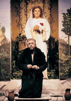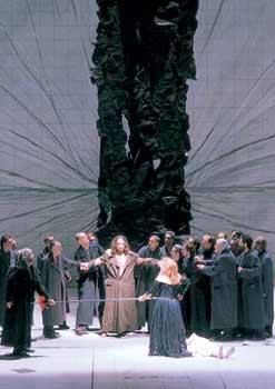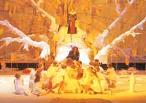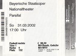 オーケストラもメータ率いる日本公演よりも格段に素晴らしくて、モノトーン的に揃った音色が一糸乱れぬアンサンブルを展開した。この透明感と適度の重厚さはとても自然で誇張は一切感じられない。それにシュナイダーのテンポ運びが大きな流れを作っているという感じで、終始、集中力が途切れることなく神聖劇にのめり込んでしまう。明日4/1にアバドBPOのパルジファルを見ることになるが、今日これほどの質の高いパルジファルを見てしまったからには、明日も心して望まなくてはという気持ちにさせられてしまった。カーテンコールの拍手喝采はモルを頂点として、シュナイダーにも大きな拍手が寄せられた。コンヴィチュニーも一緒に出てきたが、さすがに盛大なブーイングを浴びていたのが面白い。 |