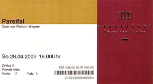 さて今日はフェストターゲ最終日のパルジファル。一昨日のトリスタン、昨日のマイスタージンガーと2演目連続しただけでも、かなりの手ごたえを感じる。チクルスで見られている方はさらに感動の連続ではないだろうか。そして感動は今日でピークに達するに違いない。バレンボイムも歌手もオーケストラも、最終日ということで、きっと素晴らしい演奏が期待できそうだ。