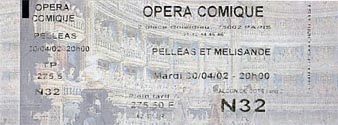 さて今日のオペラはドビュッシーの「ペレアスとメリザンド」でした。初演は1902年4月30日にパリ・オペラ・コミックで、ちょうど100周年を記念して同じ日の同じ時間で、しかも同じ場所でミンコフスキー&マーラーチェンバーにより上演されました。チケットは1年ほど前確保しておきましたが、小さな劇場なのでチケットはすぐに完売したと思われます。