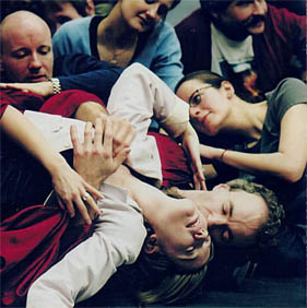 それにしても冒頭から貪欲なセックスシーンが連続し、見るものを釘付けにしていました。ツェルリーナの結婚の場面などは、ローエングリンで見せた小学校のコンセプトのように、会社の制服姿の男女が沢山ピクニックにでも行く出で立ちで、ステージを走り回るという演出が爆笑でした。彼らも男女問わず集団で衣服を脱ぎ始めて、露骨なセックスシーンで狂乱することに。ともかく滑稽で刺激的な展開ですが、意外なほど演出とモーツァルトの音楽がマッチしてることに驚きました。音楽の躍動感、テンポの起伏に合わせながら、群集の動き回るエネルギッシュさをパロディックなドラマ展開に一致させている点は、コンヴィチュニーの天才的演出のなせる技に他なりません。