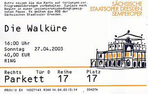 SAECHSISCHE STAATSOPER DRESDEN Sonntag,den 27. April 2003, 16.00 Uhr Richard Wagner Der Ring Des Nibelungen Erster Tag DIE WALKUERE |