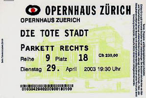 Zurich DIE TOTE STADT Oper in drei Bildern