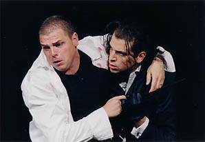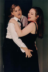 第1幕はヴィテッリア(レッシュマン)とセスト(カサロヴァ)の2重唱から、場面は2段目の左手の部屋で、日常生活を営む設定で開始されました。レッシュマンはやや太ってきたようですが、妖艶に下着を着替えるシーンが昨年のドン・ジョバンニの趣向を思わせました。ボーイッシュなカサロヴァがレッシュマンと抱き合いセクシーな場面を展開するものの、違和感はなく、美しいモーツァルトの響きととてもマッチしていました。ちなみに今年は男性の下着姿も多数登場するはクセイのこだわりなのでしょうか。第3番のデュエットで登場するアンニオ役のギャランカは今日のヴィオッティ指揮のモーツァルト・マチネでも歌っていますからダブルヘッダーでの登場。しかも明日のマチネも歌うという活躍ぶりに目を見張ります。一方、アンニオの恋人セルヴィリアはバーバラ・ボニーで、彼女の透明なソプラノは何時聞いても魅力的。以上の4人が織り成すドラマは主に2層目、3層目の小部屋を左右上下に場所を変えて展開。これに対して1層目中央の皇帝の部屋ではティートが物思いに更けるのようにベッドにずっと座っていました。まるでティートの周辺を巡る出来事をお見通しだと言わんばかりにも感じます。