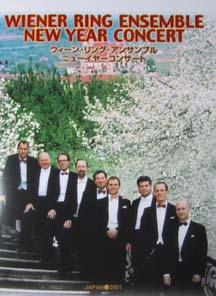 ウィーン・リング・アンサンブル 2001年1月6日(土)14時/王子ホール (演奏) ライナー・キュッヒル(ヴァイオリン) エクハルト・ザイフェルト(ヴァイオリン) ハインツ・コル(ヴィオラ) ゲアハルト・イーベラー(チェロ) アロイス・ポッシュ(コントラバス) ウォルフガング・シュルツ(フルート) ペーター・シュミードル(クラリネット) ヨハン・ヒントラー(クラリネット) ギュンター・ヘーグナー(ホルン) (プログラム) J.シュトラウスU :オペレッタ「インディゴと40人の盗賊」序曲 ツィーラー :ポルカ「ランデヴー」 ヨーゼフ・シュトラウス:ワルツ「天体の音楽」 ツィーラー :ワルツ「心地よい夜に」 J.シュトラウスU :ポルカ・シュネル「ハンガリー万歳」 −休憩− J.シュトラウスU :ワルツ「ウィーンの森の物語」 ランナー :ガロップ「狩人の喜び」 レハール :オペレッタ「メリー・ウィドウ」より「マキシムの歌」 ツェラー :オペレッタ「小鳥売り」メドレー J.シュトラウスU :オペラ「騎士パスマン」より「チャールダーシュ」 (アンコール) J.シュトラウスU :ポルカ「観光列車」 J.シュトラウスU :ワルツ「美しき青きドナウ」 J.シュトラウスT :ラデッツキー行進曲 |