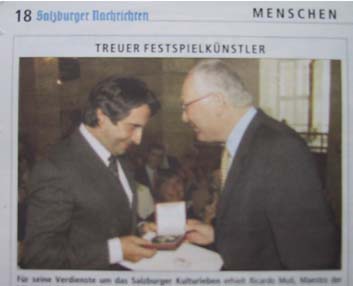 | 8/12のザルツブルガー・ナハリヒテンによると、ウィーンフィルのマエストロ、リッカルド・ムーティの1971年からの音楽祭への功績が表彰されたとのこと。 |
