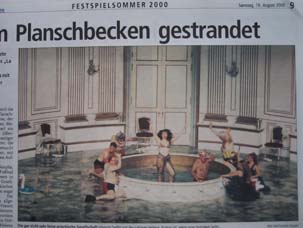 音楽はパリ管弦楽団のメンバーによる室内楽。室内楽できくものだから、どこかバロック・オペラを思わせるところがあり、ベルリオーズのトロイヤに対するコントラストが鮮やか。オペレッタのアンサンブルもすこぶる軽快で、青リンゴをキーワードとした演出と上手く噛合っていた。幕間には案の定、雨が降ってきた。かなりの大雨で雷が鳴り響き、第2幕途中では雷が妙に舞台の場面とマッチングしたのには苦笑する。この日はザルツブルクでも久々の雨となり、夏の風物詩を感じるのであった。