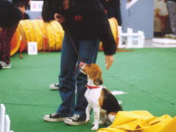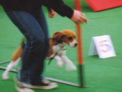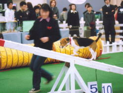 これからアジリティに挑むんです。 緊張してるのがわかるでしょう… いつもと全然違う場所なんだもん。 まずは、ハードルは無事にクリア。 緊張のあまり柵越えして、 Cちゃんに迷惑掛けちゃいました! |