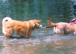 何度も川へ入れられてうんざり気味のはな。 |