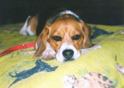 コンクリートの叩きで日向ぼっこはなちゃん。 |