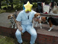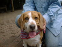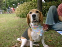 はなちゃんは サラママのひざの上… サラママの顔はナイショ!! |