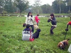 | 清里の森で、本当に楽しそうです。 はなは、パターゴルフを楽しんでいた子のボールにちょっかい出しちゃいました。 |