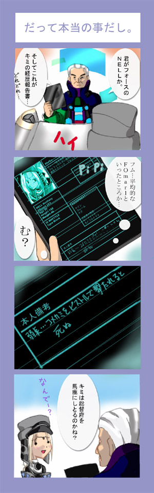 なんと、今回のNELL殿の投稿作品は4コマです! 「時間不足&疲れがかなり絵に現れてます」(汗) 「ギリギリで笑えないラインを 狙ってみました」 なるコメントが届いているのですが… どーでしょ? 個人的には「なんでー?」がキモかと。(笑) 全部で三作品です。 -次を読む-