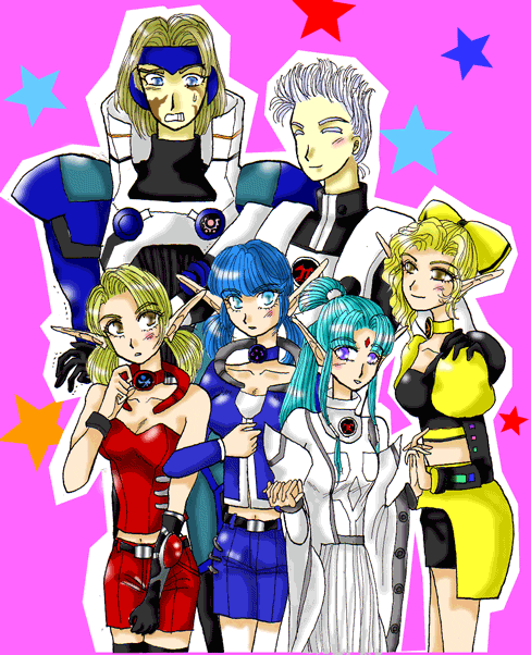 前列が左から、カエデ嬢、ミコフィス嬢、リフル嬢、ユミリア嬢です。
