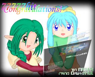 77777pageviewおめでとうございます。 ごめんなさい、他人のキャラ描けないので自分のキャラ。 ライカとリフルです。普段着(?)だと誰だかわかりませんね(汗 −舞夢 と、いうコメントを頂きました〜。 実はCG中のOASISHPのカウンタが きちんと77777になってるんです。コレ。 (大きい画像(1566x1263px、200KB) で確認できますよん。)