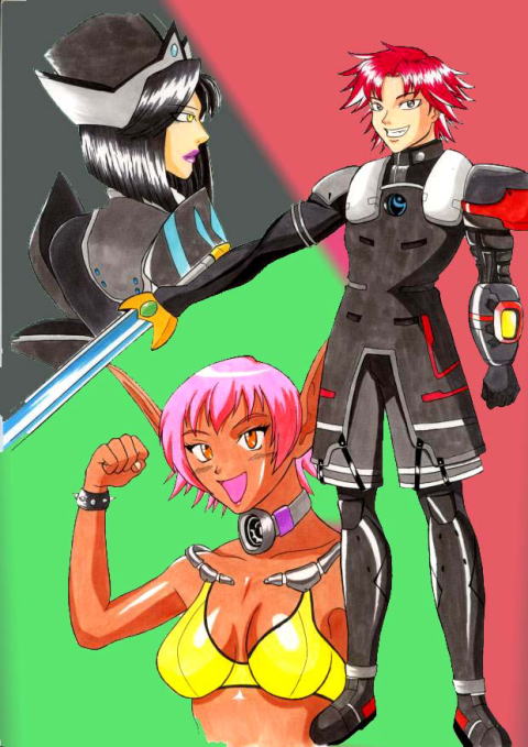 戦神殿のキャラクター3名のイラストです。